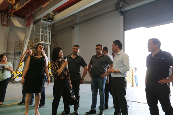 6月11日下午,在巴西中国商会叶康妙会长的陪同下,罗德里戈·阿什乌奇率领的巴西圣保罗州代表团一行来到中复连众连云港叶片基地参观考察,中复连众副总经理梁颖热情接待了代表团一行。