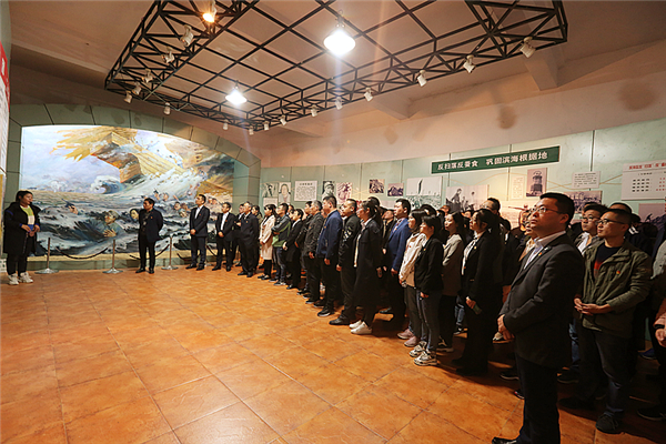 在小沙东海战烈士冢前,大家为长眠于此的革命先烈敬献花篮,三鞠深躬,深切缅怀为革命胜利而英勇捐躯的烈士英灵。党委副书记、副总经理王彤兵带领大家重温入党誓词,牢记党的宗旨,牢记共产党人的初心和使命,坚定理想信念。