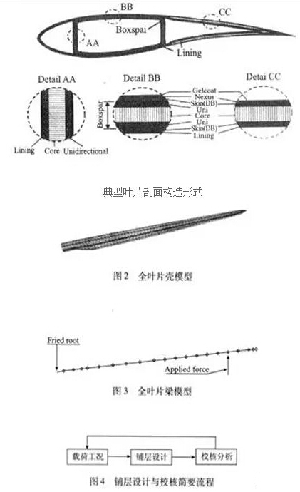 风电叶片设计可分为气动设计和结构设计这两个大的阶段,其中气动设计要求满足前两条目标,结构设计要求满足后四条目标。通常这两个阶段不是独立进行的,而是一个迭代的过程,叶片厚度必须足够以保证能够容纳腹板,提高叶片刚度。