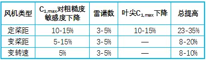 这些翼型各有优势,Seri系列对翼型表面粗糙度敏感性低;RISO-A系列在接近失速时具有良好的失速性能且对前缘粗糙度敏感性低;FFA-W系列具有良好的后失速性能。丹麦LM公司已在大型风机叶片上采用瑞典FFA-W翼型,风机专用翼型将会在风电叶片设计中广泛应用。表1为对NREL翼型系列性能提高的估算。