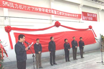 2007年12月30日上午,中复连众风力机叶片基地二分厂八号车间热闹非凡,中复连众数百名员工隆重集会,庆祝2007年第1000片1.5兆瓦风力发电机叶片下线暨完成华锐风电300套的供货任务。宝威官网在线服务总经理乔光辉主持了庆典仪式。