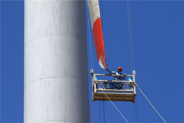 叶片客服部华东区共有15人,包含2个高空平台组,驻场服务和塔筒登高维修人员9人。他们常年奔波在各个风场,完成风力发电机叶片的安装和检修工作。不但要跟踪指导叶片吊装,在安全绳和风绳边缘穿梭巡检,还要攀爬70-140米的风机塔筒,克服内部高温进行维修作业。