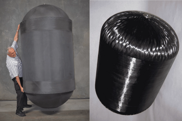 当你处理像液态氢这样的燃料时,容器重量的减轻会产生巨大的差异,因为液态氢本身的重量很轻。对于一个典型的压缩气体氢气罐来说,燃料对满罐重量的贡献程度(质量分数)一般只有10-11%。