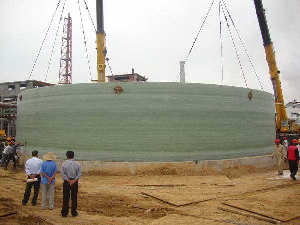 2010年3月,中复连众成功竞标湖北宜昌2台5000立方、1台3000立方的玻璃钢盐酸贮罐项目。该项目存在罐体直径大、罐顶易变形、罐身高、罐内液体压力大的难点,并且内部为高腐蚀性盐酸介质,制作难度空前,在国内甚至全球并无案例可参考。为确保该项目的成功实施,业主选择处于行业领先地位的中复连众来承担此工程。中复连众充分发挥卓越的自主创新能力,完成了多项技术攻关,通过改进缠绕设备、使用新型材料、内部采用多点支撑、优化施工工艺等方法,克服施工难点,成功完成储罐制作。从工程设计到工程竣工交付仅仅用了6个月时间,于2011年2月交付业主使用。