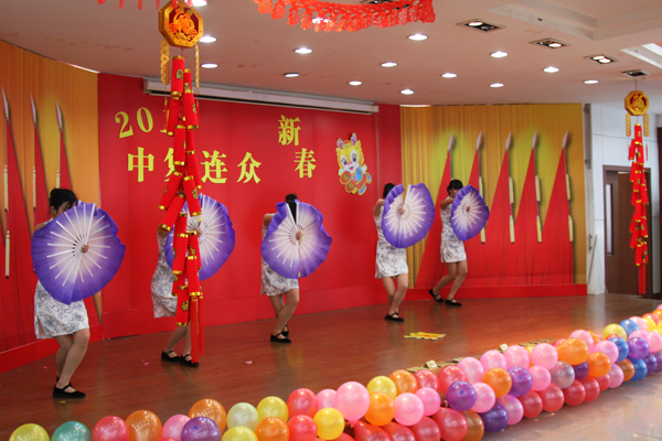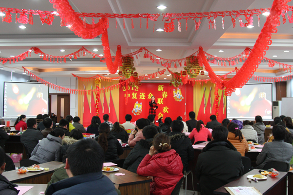 欢歌劲舞庆盛世,龙腾虎跃贺新春。1月17日,中复连众五楼多功能厅内张灯结彩、座无虚席,洋溢着喜庆祥和的节日气氛。中复连众2012年春节联欢晚会在这里隆重举行,公司领导与120名职工一起观看演出,共同庆祝龙年新春佳节的到来。