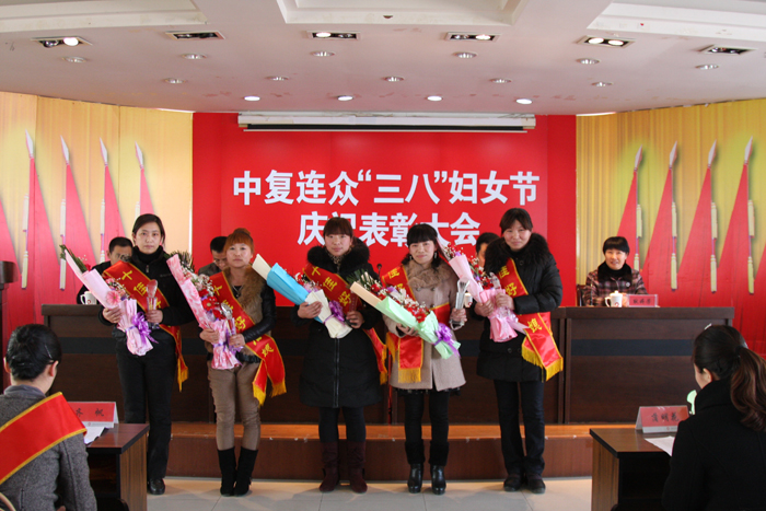 3月7日下午,五楼会议室里鲜花簇拥、春意融融,中复连众隆重举行“三八节”庆祝表彰大会,授予二十位女职工“十佳好儿媳”、“十佳贤内助”称号。
