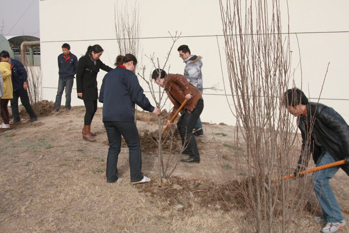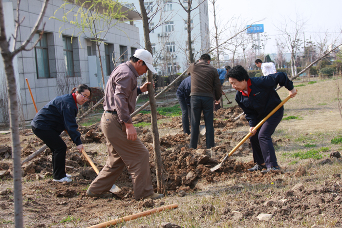 阳春三月,正是植树绿化的最佳时节。4月7日,阳光格外明媚,在工会的号召下,中复连众近百名干部职工参加共植“和谐之园”活动。任桂芳董事长带头挥锹铲土,栽下一棵棵小树苗、种下一份份希望,共同为厂区播下一片新绿。