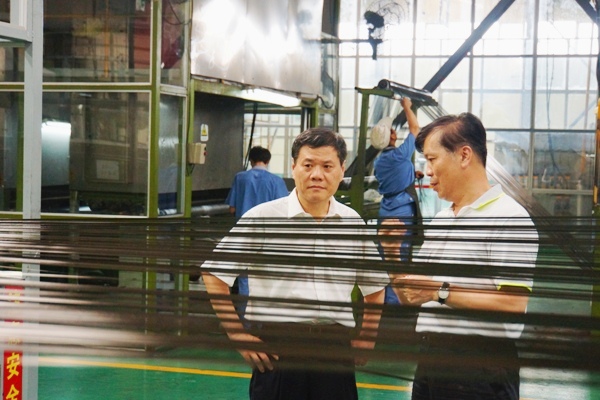 在中复神鹰碳纤维有限公司车间,张国良董事长就碳纤维产品情况、生产流程、干喷湿纺工艺等问题进行详细汇报。郭朝明还特地观看了SYT45干喷湿纺生产线,对中复神鹰的生产能力给予了充分肯定。并重点强调高性能纤维在国防军事和工业领域应用十分广泛,企业一定要注重对高性能碳纤维的研发力度,不断地提高产品性能,增强产品的国际市场竞争力。