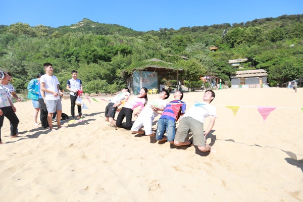 蓝天、白云、沙滩,秋高气爽,海景宜人。8月27日,中复连众迎新活动在美丽的苏马湾海滨浴场举行,34名新老员工在金色的沙滩上进行了袋鼠跳看图猜成语、团队障碍接力赛和下腰挑战赛三个竞技比赛项目,整个活动现场气氛活跃,笑声连连。