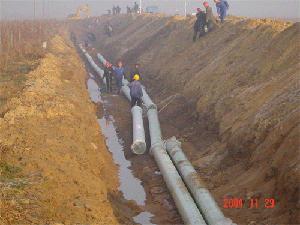 山东海阳核电厂施工用水管道一期工程总长8公里,为2条DN350的玻璃钢管道平行铺设,整个工程共使用了中复连众的玻璃钢管道约16000米,管道压力等级为1.0Mpa,产品执行JC552-94标准, 此项目由中复连众自行安装,在已经进行过的三个水压试验段的水压试验均一次性打压通过,受到了山东核电有限公司和核工业四达建设监理公司的高度评价.