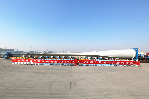 2017年12月24日,由中复连众自主研发制造的LZ68-4.X-V2首套海上风机叶片,从连云港港口顺利发运至江苏龙源蒋家沙海上风场。