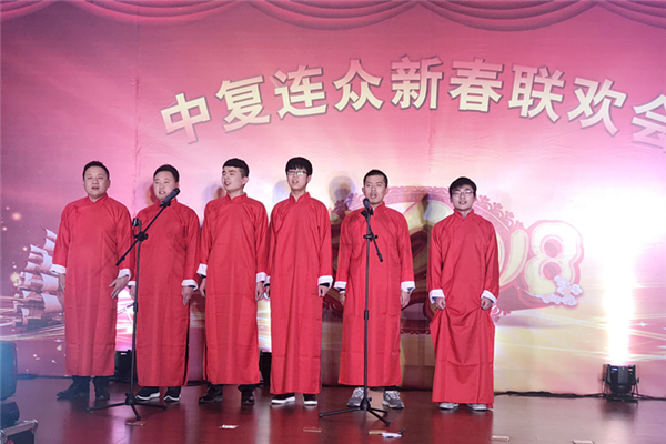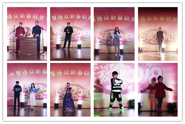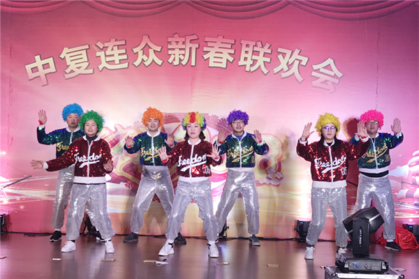 2018年2月9日,中复连众2018新春联欢会在科研办公大楼19层举行,本次联欢会在公司团委的组织下,各部门员工积极响应号召,汇聚了歌曲、舞蹈、武术、小品、相声、朗诵等累计14个多种形式的节目。