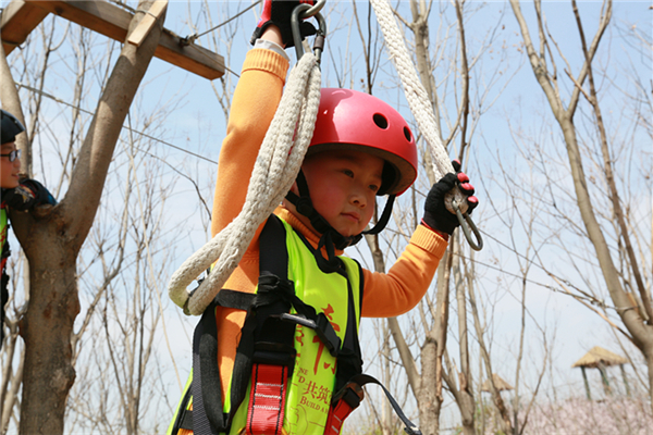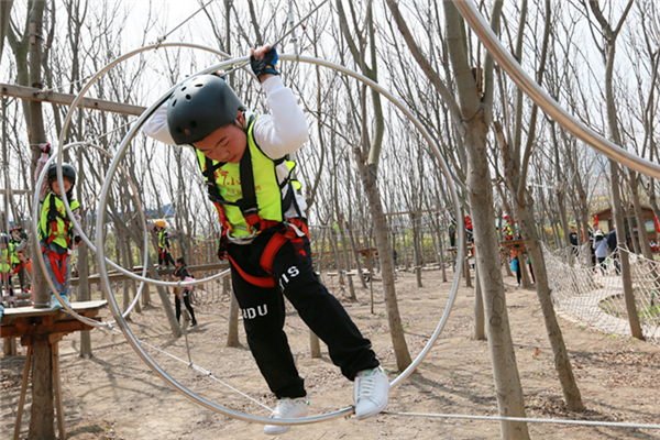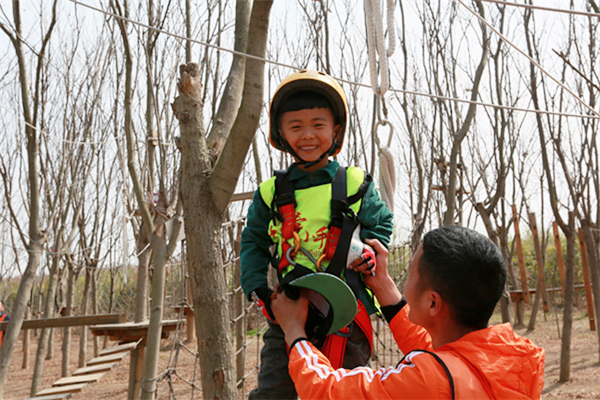 活动当天,所有参加人员身穿统一服装来到叶片事业部连云港工厂,叶片事业部的领导们为小朋友颁发了纪念品以示欢迎。他们先后参观了公司的叶片实验台、16#生产车间及多功能展厅。孩子们看到展厅里随着音视频转动的叶片,一个个兴奋地争先合影。一个小朋友看到多维叶片模型直呼是爸爸做的,逗得旁人一阵笑。随后,所有人员乘车来到拓展基地开展户外亲子活动,活动共准备了3个节目:丛林探险、互动小游戏、动物表演秀。丛林探险的每个环节都充满挑战,小朋友们需要在父母的支持与鼓励下逐级过关,小游戏环节则需要孩子们独立完成,汗水与欢笑在孩子们红扑扑地小脸上洋溢着,最终每个孩子都获得了工作人员精心准备的奖品,个个满载而归。一位来自一线的员工说道,自己平时工作忙,很少有机会陪孩子玩,在这次亲子活动中,可以和孩子一起互动玩游戏、看表演,感觉特别幸福。