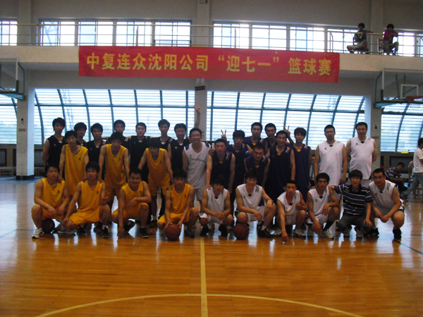 为迎接“七·一”党的生日,相应集团公司号召,中复连众沈阳公司于2010年6月28日至7月4日期间,于沈阳化工大学体育馆举行了8场别开生面的篮球比赛。公司铺层、预浸、机加工工段和行管后勤人员分别组成了四支队伍参加比赛,沈阳公司副总经理汪明港、刘扬涛带头给各队队员加油助威。